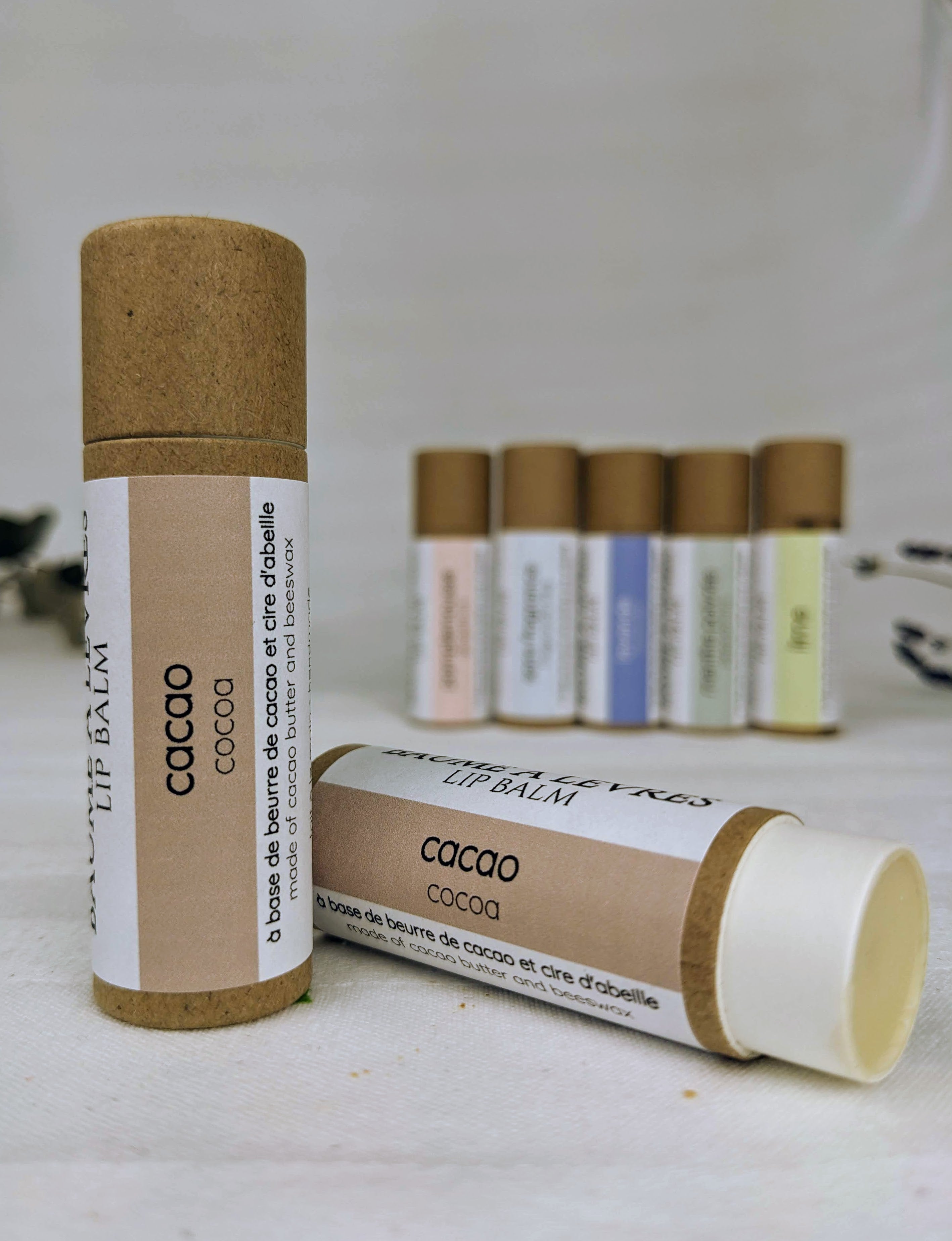 KEY INGREDIENTS Shea Butter: Deeply moisturizes and nourishes the lips, leaving them soft and supple. Coconut Oil: Helps retain moisture and provides a protective barrier against environmental stressors. Beeswax: Locks in moisture and shields the lips from harsh elements, preventing dryness and chapping. Cacao: Imparts rich hydration and a delightful chocolatey scent. PACKAGING Our Cacao Lip Balm comes in a cardboard biodegradable tube. It's a convenient and travel-friendly tube, allowing you to easily carry it wherever you go. HANDMADE IN Saint-Mathieu-de-Beloeil, Québec, Canada FORMAT 12 g |