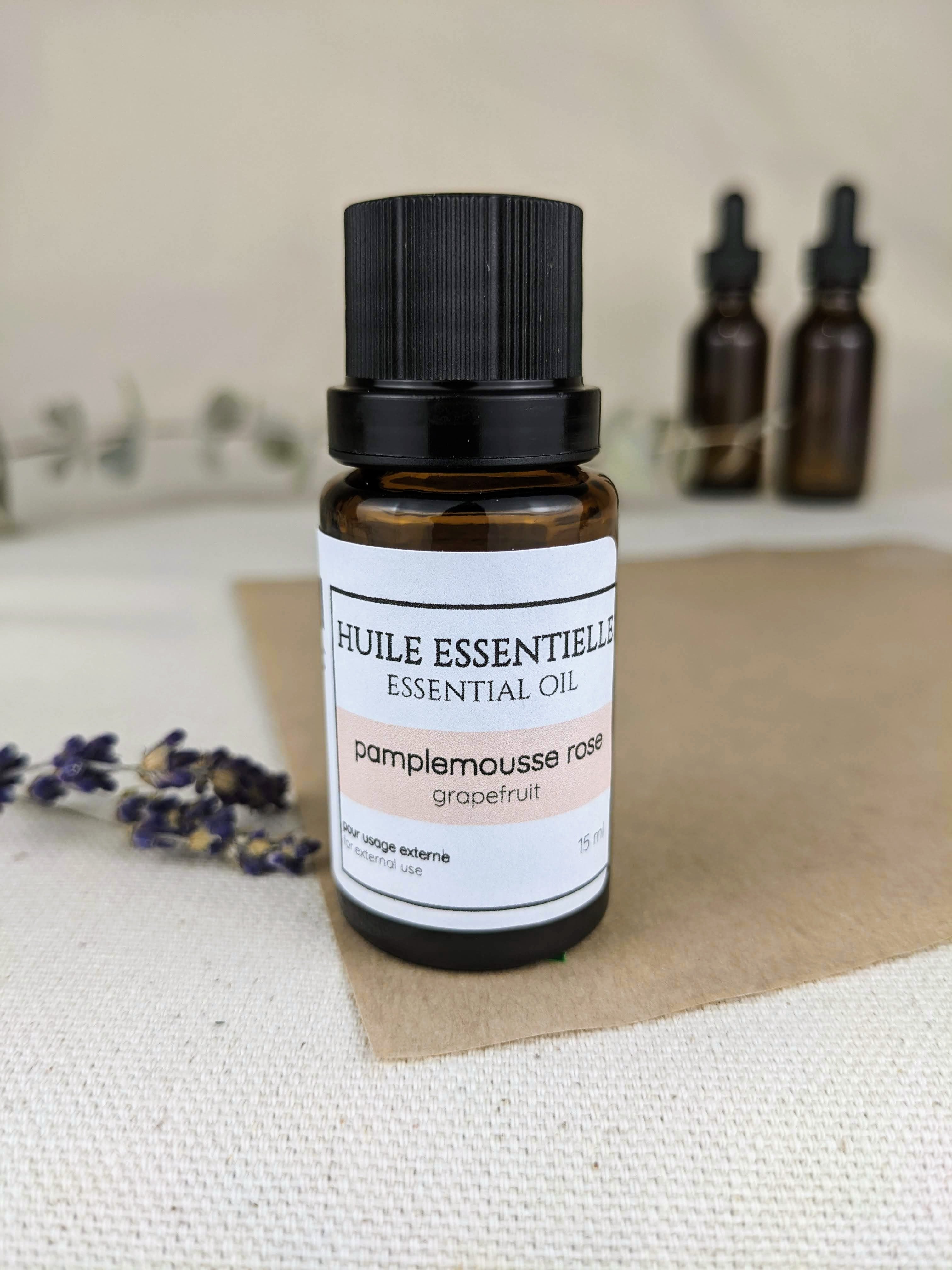 DESCRIPTION Our pink grapefruit essential oil is the perfect addition to your aromatherapy routine. This refreshing and invigorating oil is extracted from the peel of the pink grapefruit and has a sweet, citrusy aroma that can uplift your mood and promote mental clarity. Pink grapefruit essential oil is also great for promoting healthy skin, supporting digestion, and reducing inflammation. It can be used topically or aromatically and is a great addition to your daily skincare routine or diffused in your home or office to create a refreshing and energizing atmosphere. USES Aromatherapy Grapefruit pink essential oil can be used in aromatherapy to uplift mood, reduce stress, and improve concentration. Add a few drops of oil to a diffuser, or inhale directly from the bottle or a tissue. Skincare Grapefruit pink essential oil can help to improve the appearance of oily or acne-prone skin. Mix a few drops of oil with a carrier oil, such as jojoba or almond oil, and apply to the face after cleansing. Haircare Grapefruit pink essential oil can be added to shampoo or conditioner to help cleanse and refresh the scalp. Add a few drops of oil to your regular haircare products, or mix with a carrier oil and apply directly to the scalp. Household cleaning Grapefruit pink essential oil has natural antibacterial properties and can be used to clean and disinfect surfaces around the home. Add a few drops of oil to a spray bottle filled with water and use to clean countertops, bathrooms, and other areas. Weight management Grapefruit pink essential oil has been shown to help with weight management by suppressing appetite and reducing cravings. Add a few drops of oil to a diffuser, or inhale directly from the bottle before meals. CAUTION For external use only. Do not apply undiluted essential oil directly to skin. Keep out of reach of children. If you are pregnant, nursing, or under a doctor's care, consult your physician before using essential oils. Avoid contact with eyes, inner ears, and sensitive areas. Store in a cool, dark place. Introduction to Essential Oils | How to use Essential Oils | The Benefits of Essential Oils | The Essential Benefits Table |